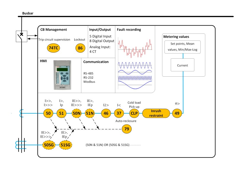 رله حفاظت اضافه جریان HF1044 یکی از تجهیزات مهم حفاظتی در سیستمهای قدرت است که برای تشخیص و قطع جریانهای غیرعادی یا خطا در شبکه استفاده میشود. این رله با نظارت مداوم بر جریان مدار، در صورت افزایش غیرمجاز جریان (ناشی از اتصال کوتاه، اضافه بار، یا سایر خطاها)، عمل کرده و با ارسال سیگنال به کلیدهای مدارشکن (Circuit Breakers)، باعث ایزولاسیون بخش معیوب شده و از عملکرد غیرعادی شبکه جلوگیری میکند. همچنین در عمل بخاطر مجهز بودن به تابع بازبست خودکار، در هنگام بروز خطاهای گذرا، مانع از بیبرقی طولانی میشود. این رله با ارائه حفاظتهایی نظیر حفاظت اضافه جریان فاز، اضافه جریان زمین، بازبست خودکار، اضافه بار حرارتی، افت جریان و توالی منفی جریان در زمان بروز خطا، مانع از عبور جریان غیرعادی میشود و از ایجاد خسارت جلوگیری میکند. همچنین امکان تشخیص جریان هجومی، Cold Load Pickup و CBF را داشته و باعث عملکرد آگاهانه و درست رله میشود.